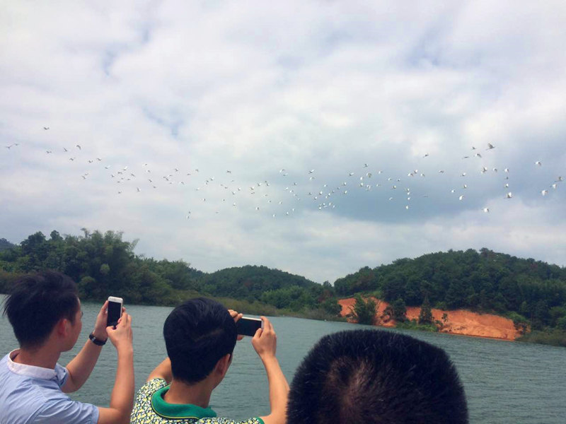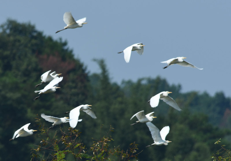 成群结队的黄嘴白鹭“定居”万绿谷,皆因此处拥有大量立体林带,空气新鲜,让鸟类有了理想栖息地;万绿湖畔许多小鱼虾或浮游生物,都是鸟类喜爱的食物,优美的生态环境,为鸟儿提供了一块洁净的嬉戏场所。